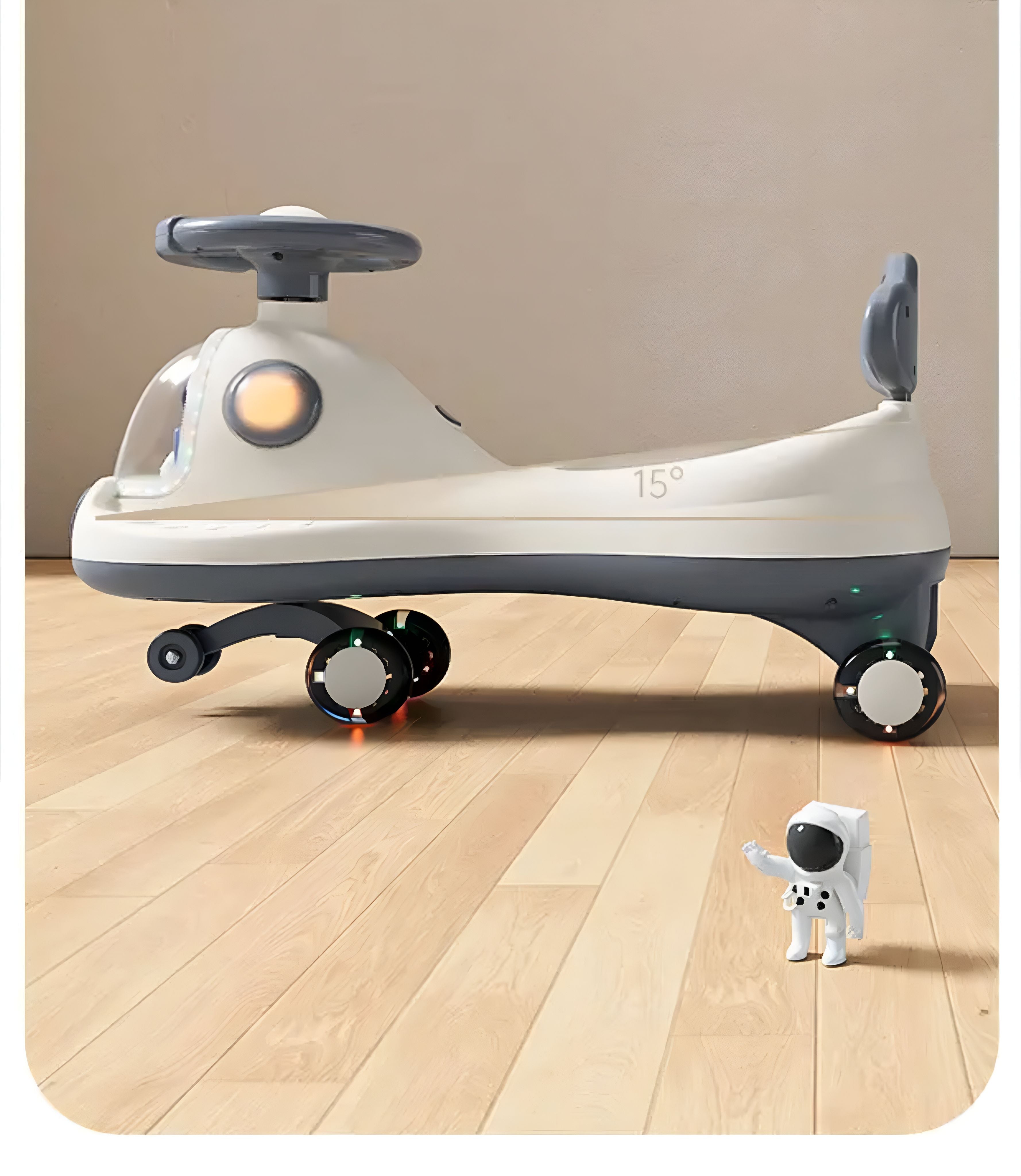 Our swing car is suitable for both indoor and outdoor use. Equipped with wear-resistant PU wheels, our swing car will not damage floors. Also kid will have a quieter and smoother riding experience. Flashing wheels make every ride cool and colorful, which increase the interest of kids.