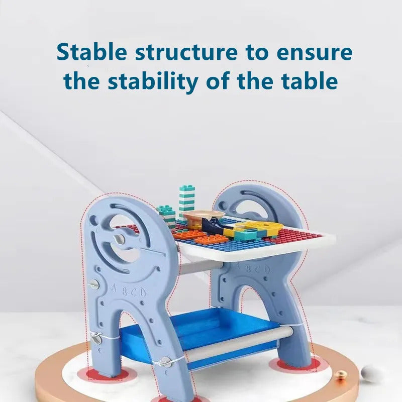 【 Large Surface For Building Block 】The tabletop surface is made of a-sided Play board, you can convert it from a construction playtime table to a smooth surface table for creative playtime, it provides the perfect play space for kids building fun!