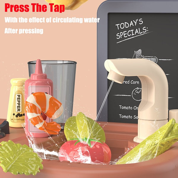 SAFE & DURABLE: This toy kitchen set is crafted from ABS material to ensure the safety of your kids. Its sturdy construction and smooth edges make it durable and long-lasting, perfect for hours of playtime.