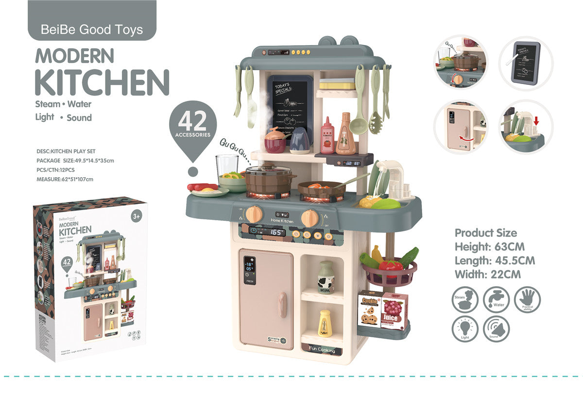 REALISTIC PLAY KITCHEN APPLIANCES: This kids' kitchen set provides children with a fully equipped and interactive cooking experience, thanks to its real cooking model, steam simulation, and play sink with running water.