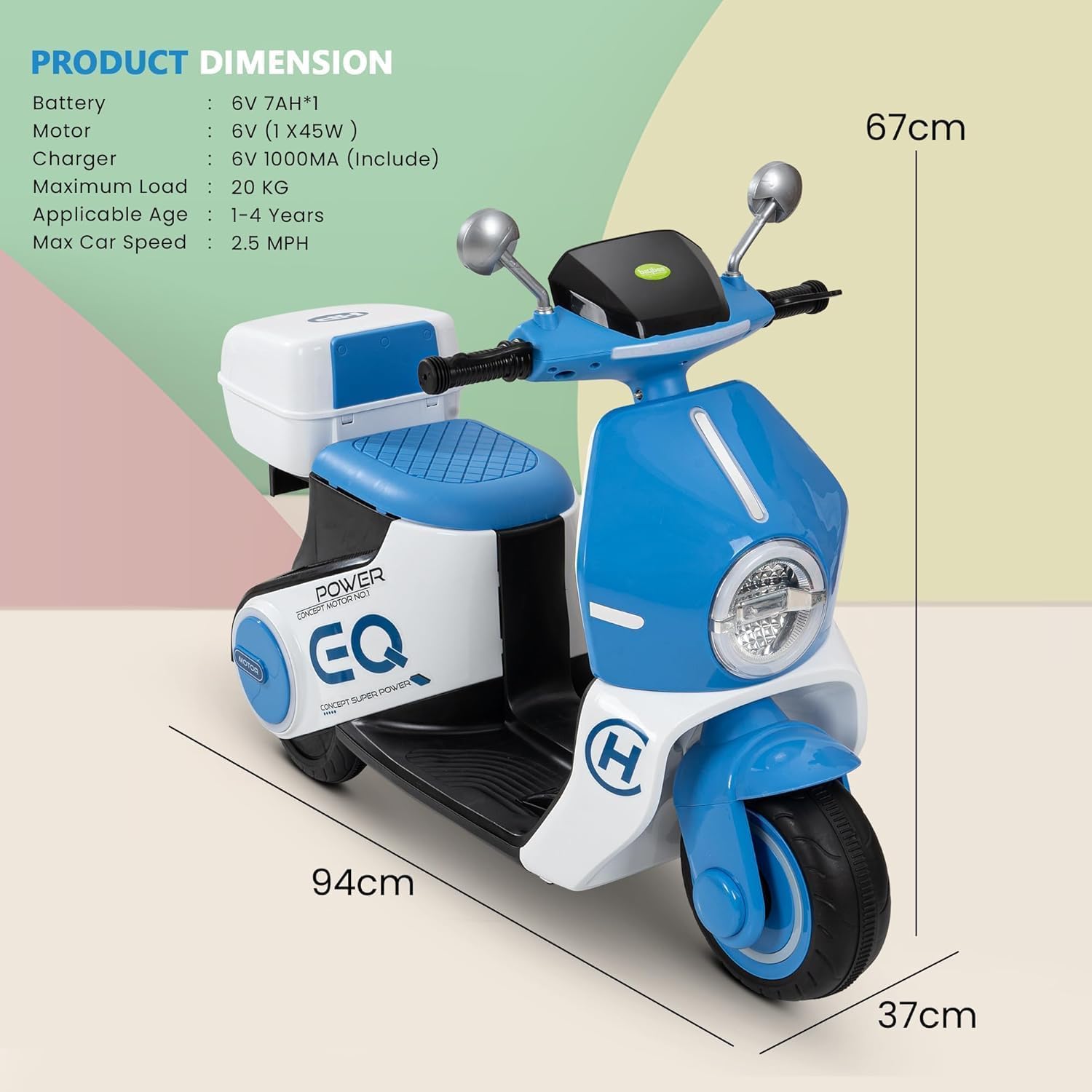 Durable & Child-Safe Build: Made from high-quality, eco-friendly plastic, this ride-on bike is built for durability and safety. The rechargeable battery offers up to 40 minutes of playtime after an 8-12 hour charge, ensuring endless fun for little riders.