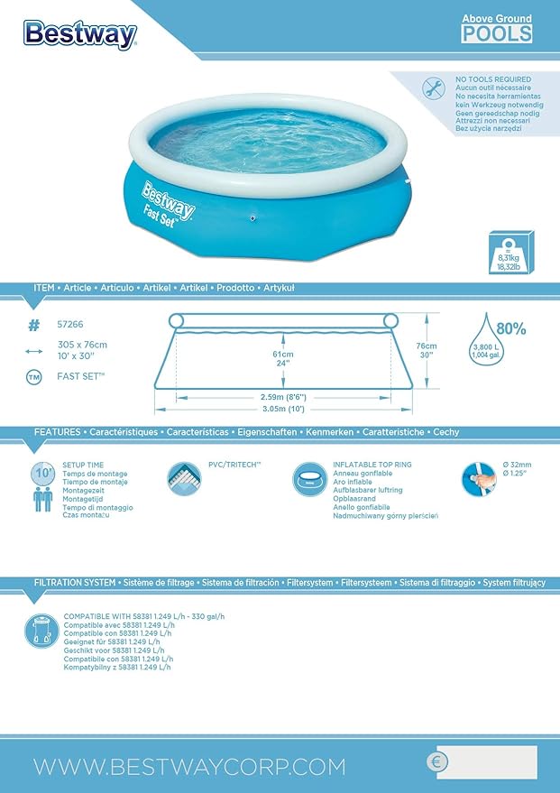 Get ready for some summer fun with the BESTWAY Round Inflatable Swimming Pool! At 10 feet in diameter and 30 inches deep,
