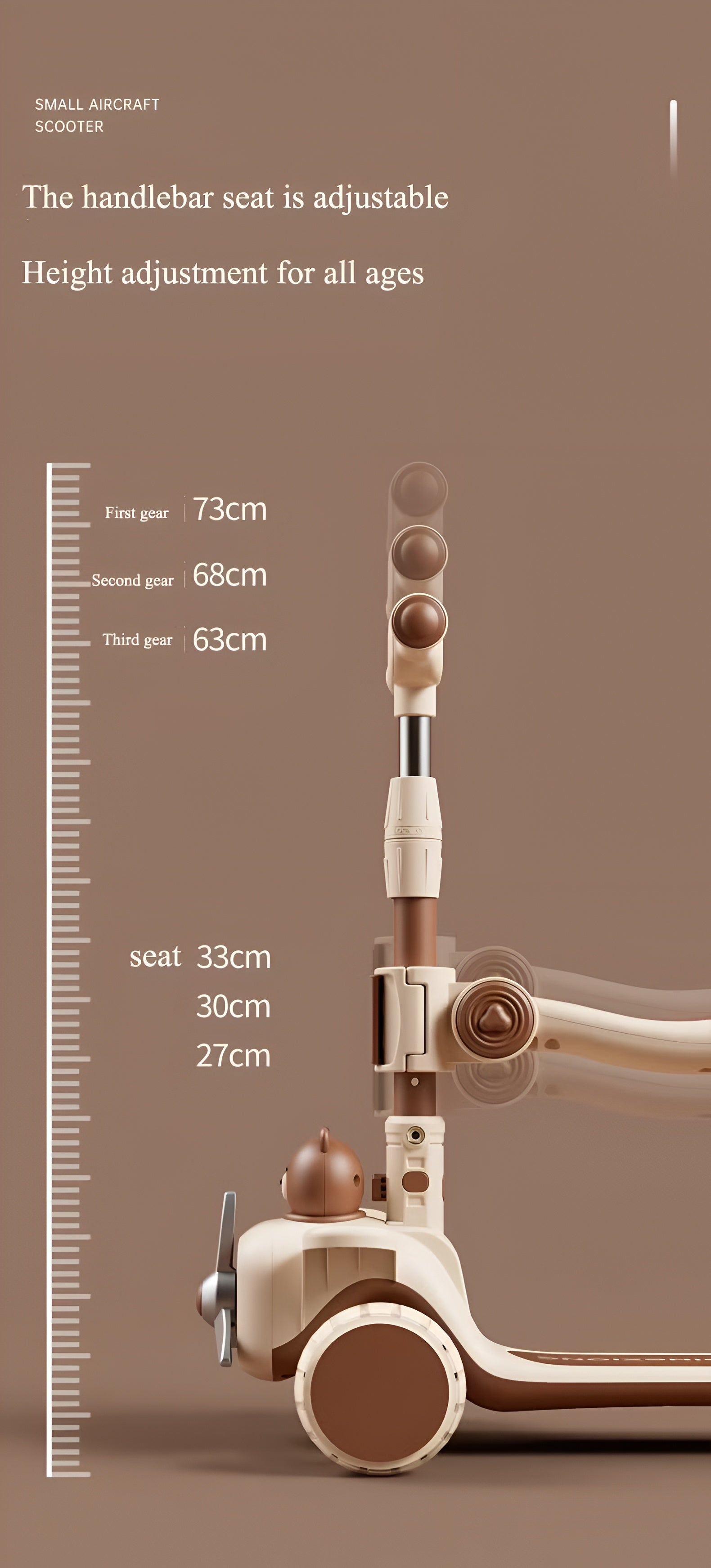 Scooters with Seat,The seat of this scooter is movable, your child can choose to sit or stand,The two pattern can be changed at any time to meet the needs of any age,Scooters with seats are suitable for children aged 2-6, and scooters without seats are suitable for children aged 2-12,The seat is very beautiful, no burrs, and there are anti-slip particles on the surface, so your child won't flip over when turning corners.