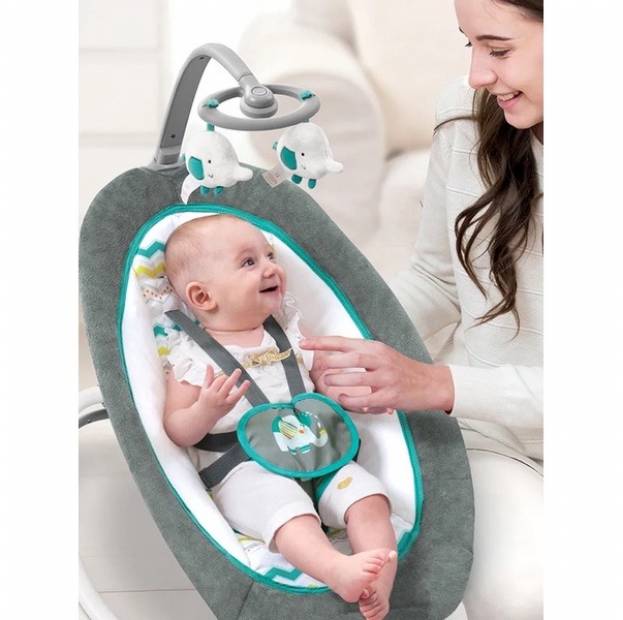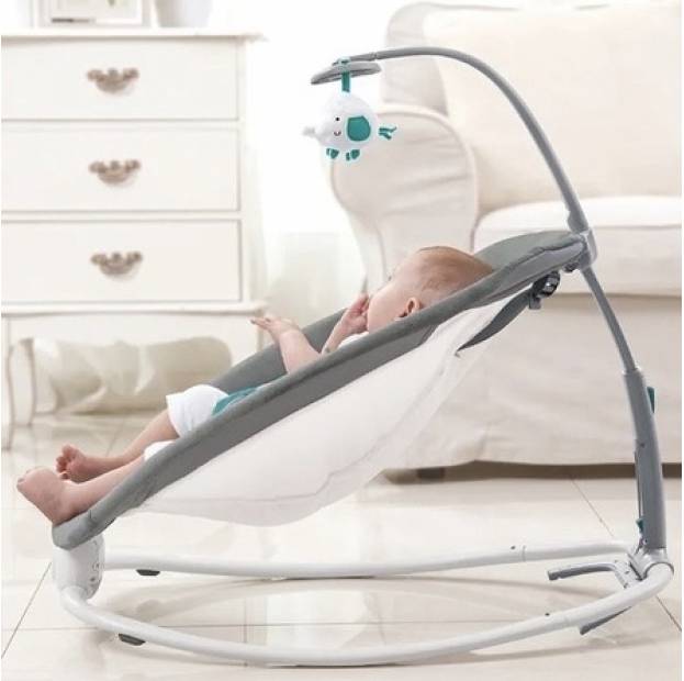 The rocking chair is equipped with an electronic unit with vibration and music, which will allow even the biggest fidget to get sick. An arc with hanging Playthings will entertain the child and allow you to go about your business. The chair is made of fabric that is pleasant to the touch.